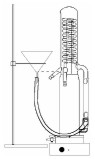 - umístěte nálevku do stojanu (viz obrázek na následující stránce). Dno kónické části nálevky musí být v úrovni spodního okraje olivky (4) sloužící pro odvod destilované vody viz obrázek.