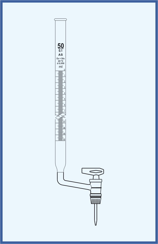 A burette is a volumetric measuring glassware which is used in analytical chemistry for the accurate dispensing of a liquid, especially of one of the reagents in a titration. The burette tube carries graduated marks from which the dispensed volume of the liquid can be determined.