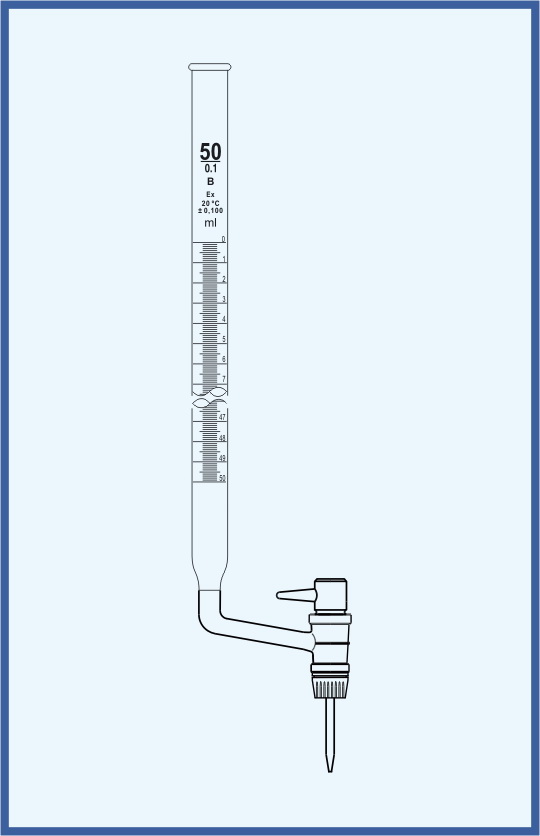 A burette is a volumetric measuring glassware which is used in analytical chemistry for the accurate dispensing of a liquid, especially of one of the reagents in a titration. The burette tube carries graduated marks from which the dispensed volume of the liquid can be determined.