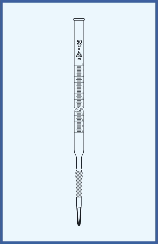A burette is a volumetric measuring glassware which is used in analytical chemistry for the accurate dispensing of a liquid, especially of one of the reagents in a titration. The burette tube carries graduated marks from which the dispensed volume of the liquid can be determined.