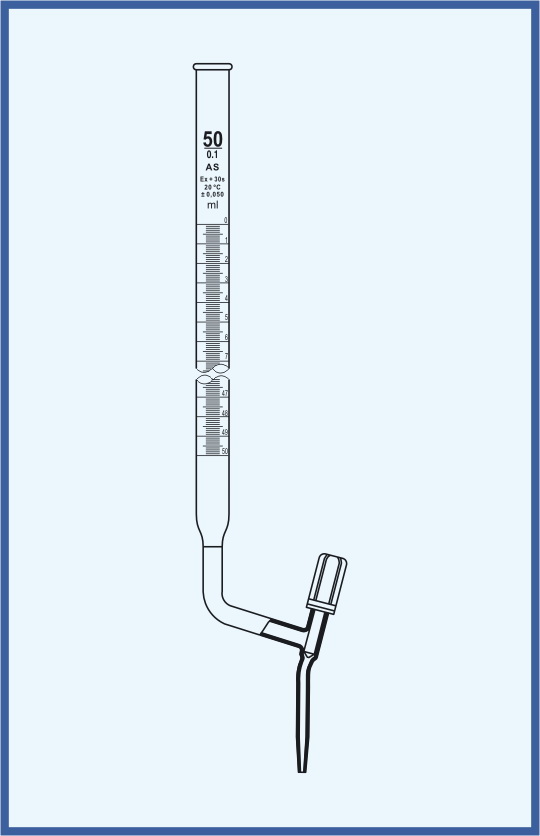 A burette is a volumetric measuring glassware which is used in analytical chemistry for the accurate dispensing of a liquid, especially of one of the reagents in a titration. The burette tube carries graduated marks from which the dispensed volume of the liquid can be determined.