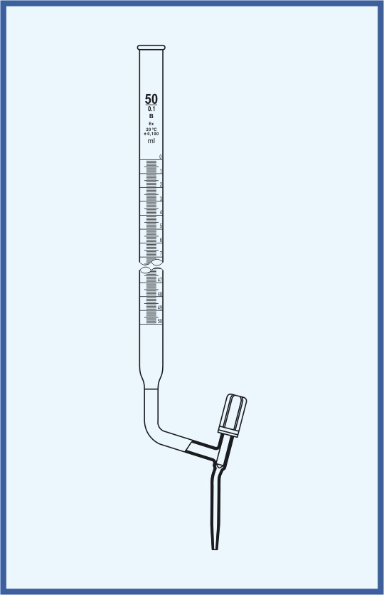 A burette is a volumetric measuring glassware which is used in analytical chemistry for the accurate dispensing of a liquid, especially of one of the reagents in a titration. The burette tube carries graduated marks from which the dispensed volume of the liquid can be determined.