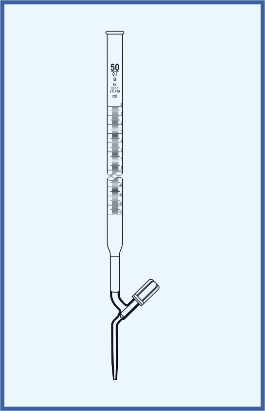 A burette is a volumetric measuring glassware which is used in analytical chemistry for the accurate dispensing of a liquid, especially of one of the reagents in a titration. The burette tube carries graduated marks from which the dispensed volume of the liquid can be determined.