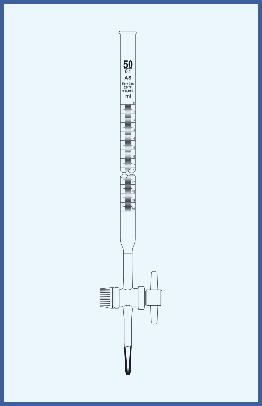 A burette is a volumetric measuring glassware which is used in analytical chemistry for the accurate dispensing of a liquid, especially of one of the reagents in a titration. The burette tube carries graduated marks from which the dispensed volume of the liquid can be determined.