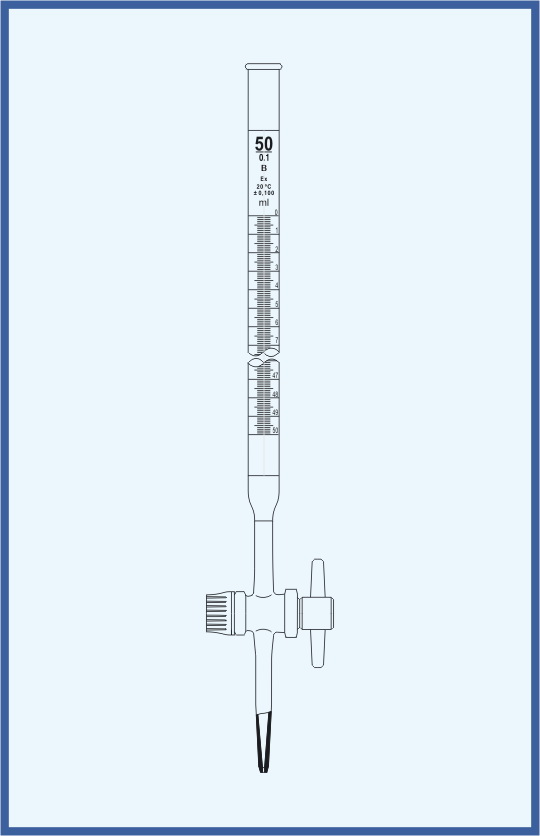 A burette is a volumetric measuring glassware which is used in analytical chemistry for the accurate dispensing of a liquid, especially of one of the reagents in a titration. The burette tube carries graduated marks from which the dispensed volume of the liquid can be determined.