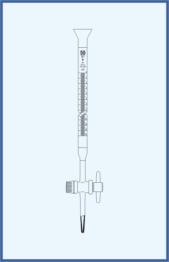 A burette is a volumetric measuring glassware which is used in analytical chemistry for the accurate dispensing of a liquid, especially of one of the reagents in a titration. The burette tube carries graduated marks from which the dispensed volume of the liquid can be determined.