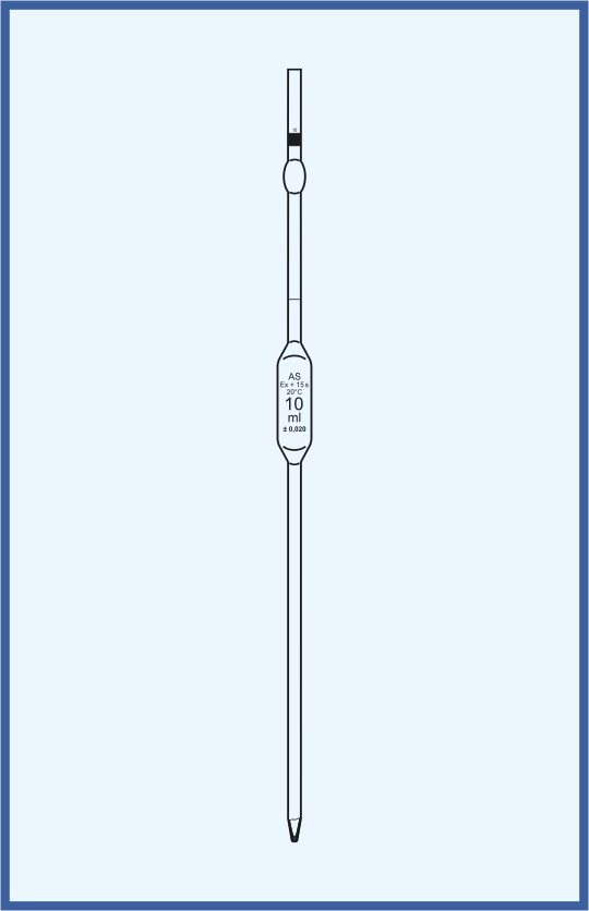 One mark pipettes contain one graduation mark and are made of high-quality soda lime glass. They are produced according EN ISO 648. We offer class AS and class B.